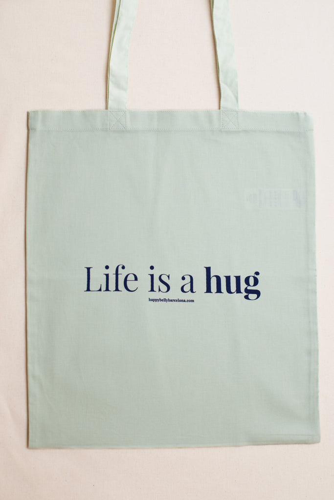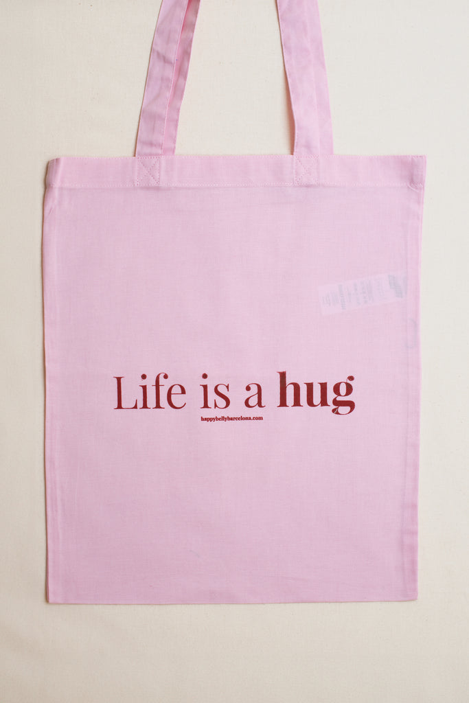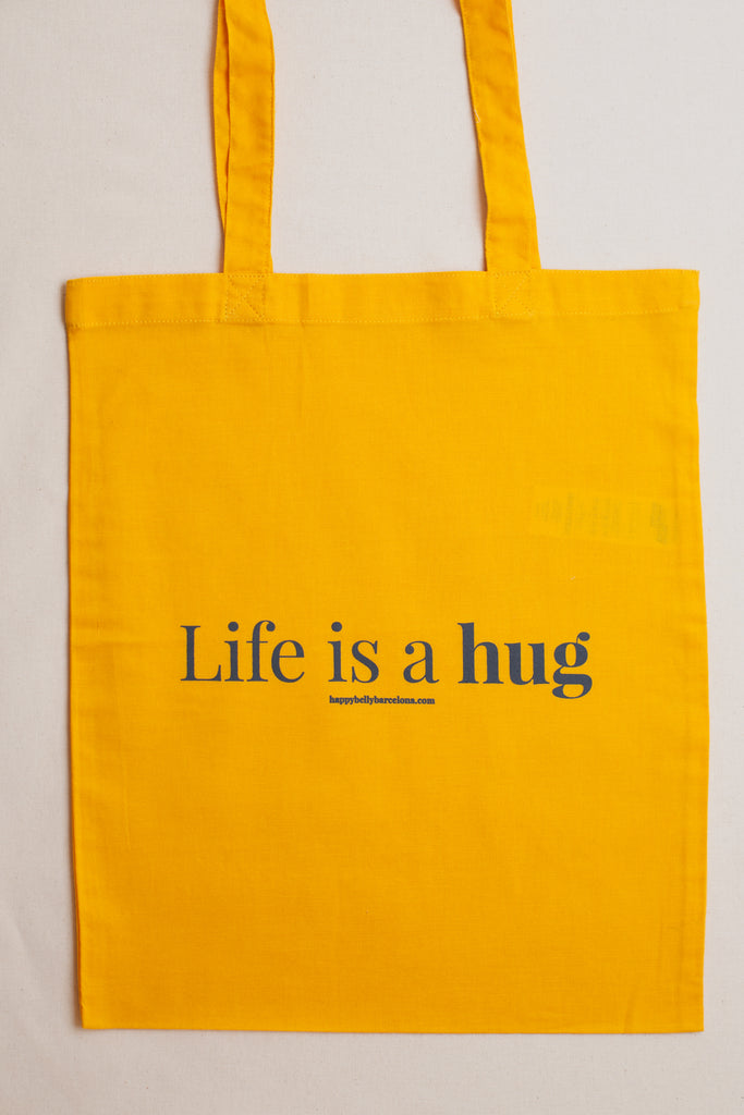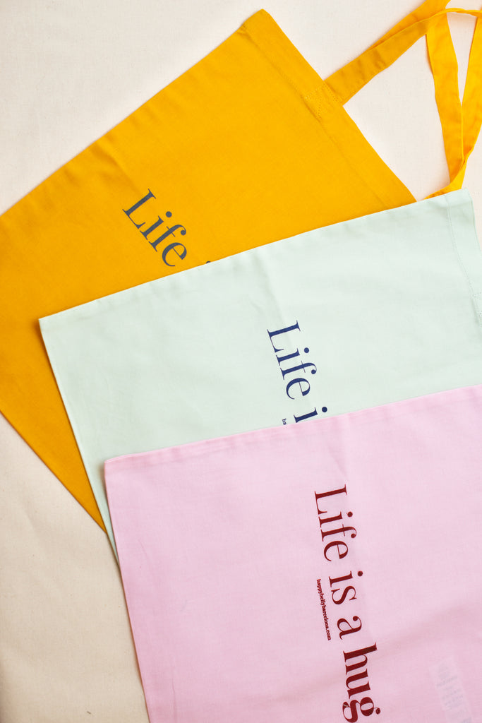 ¡La vida es un abrazo de color! Nuestra totebag ligera es el complemento perfecto para salir a la calle y que todo sea más fácil y alegre. Llévala contigo para ir de compras, a la playa, al parque… De algodón orgánico, disponible en varios colores y estampada con serigrafía manual ¡te enamorará!