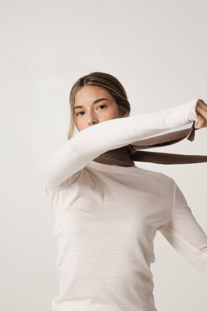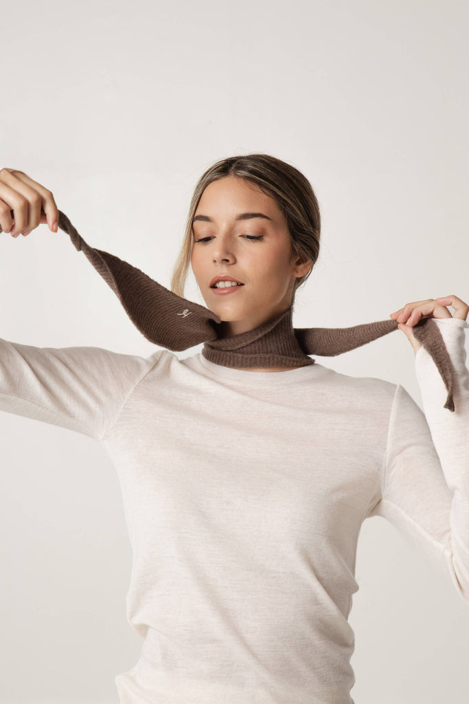 Descubre este cuello de lana merino, ¡tan elegante y versátil que no querrás quitártelo! Un accesorio original que puedes usar como bufanda, pañuelo o lazo, según tu look del día.