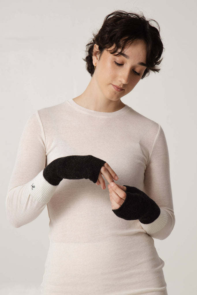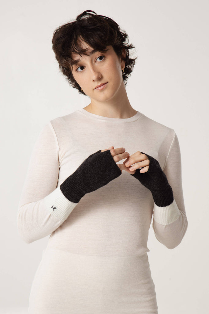 Protege tus manos del frío con estos suaves mitones de lana merino. Guantes sin dedos que combinan calidez, comodidad y libertad de movimiento en tu día a día.