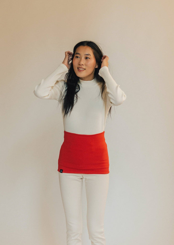 The Happy Belly haramaki is a soft fabric band that traps body heat and protects the lower back from the cold, providing a pleasant feeling of sustained warmth. Wearing a haramaki is like wearing a hug!