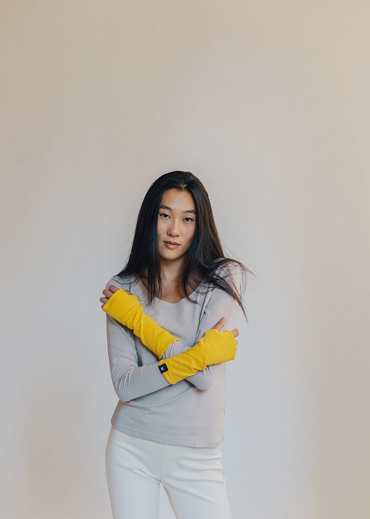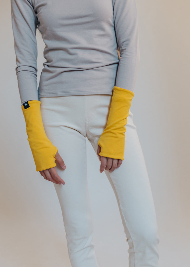 Happy Belly Barcelona mittens are a healthy, comfortable and practical fashion accessory. Your fingers remain free, you do not lose the sensation of contact when typing, writing, on the bike handlebars or picking up any object... Their double layer of organic cotton makes them very pleasant to the touch. Easy to put on and maintain, these mittens are reversible and you can match your haramaki and turban.