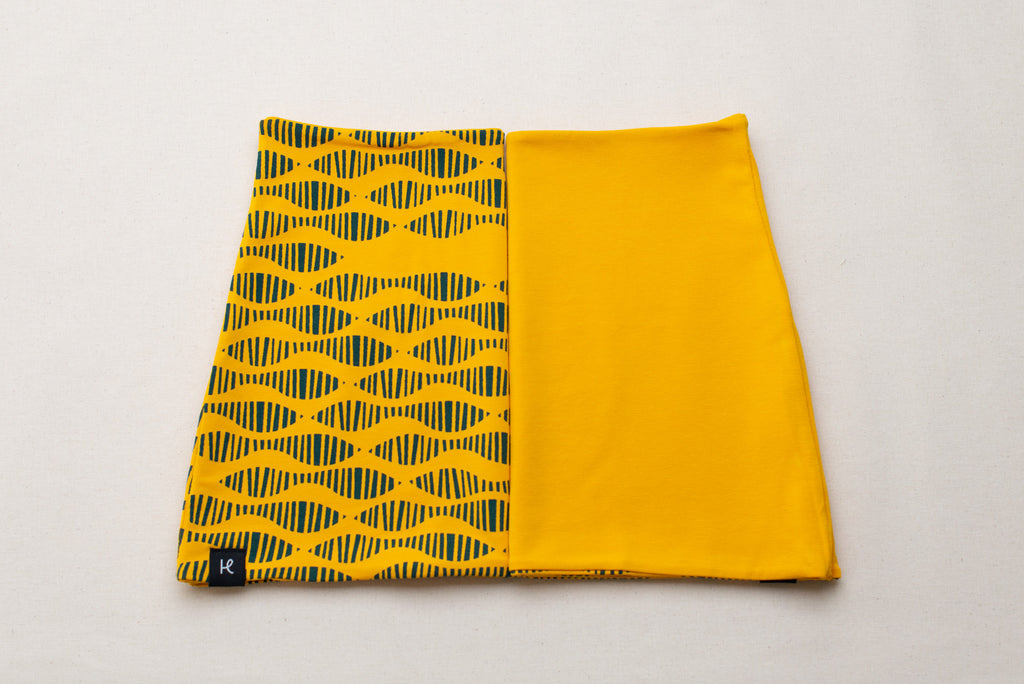The collection of haramakis, mittens and turbans, designed exclusively for Happy Belly Barcelona and printed with handmade silkscreen on organic cotton, is available in four cheerful color combinations.