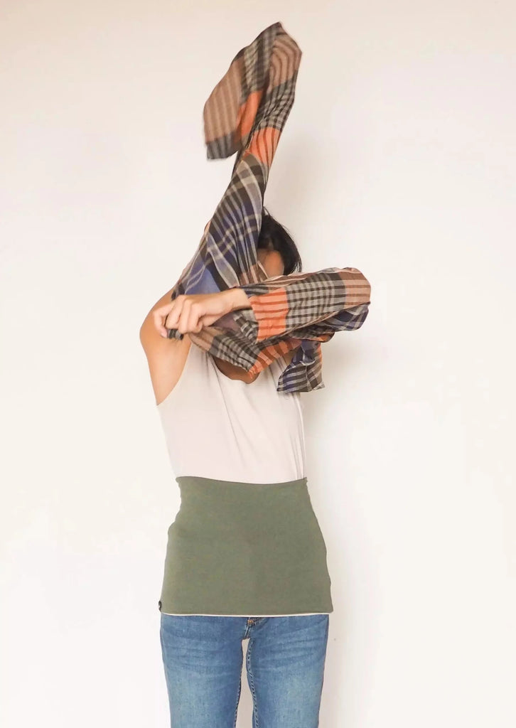 A combination of plant inspiration that takes us to the forest, to the cultivated countryside landscape... Reversible haramaki in 2 colors: khaki green and beige. Double layer of GOTS organic cotton, perfect to wear on sight, combining with the rest of the pieces of clothing. Sewn in social workshops in Barcelona. Unisex and available in 5 adult sizes.