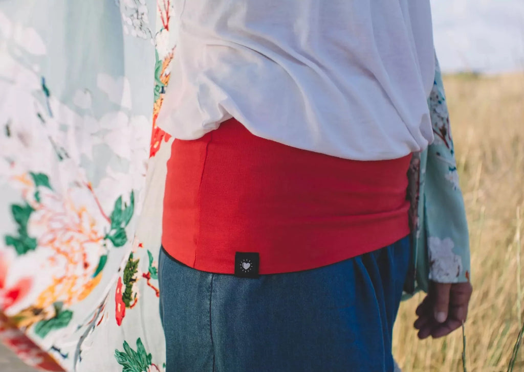 The Happy Belly haramaki is a soft fabric band that traps body heat and protects the lower back from the cold, providing a pleasant feeling of sustained warmth. Wearing a haramaki is like wearing a hug!